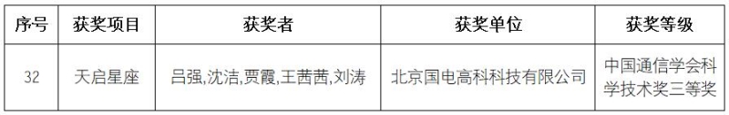 2022年3月14日,中国通信学会公布了2021年度中国通信学会科学技术奖授奖项目名单,授予北京国电高科科技有限公司的项目成果《天启星座》为中国通信学会科学技术奖三等奖。