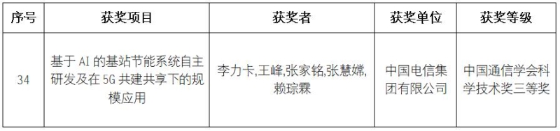 获奖成果推介 |《基于ai的基站节能系统自主研发及在5g共建共享下的规模应用》荣获中国通信学会科学技术奖三等奖-金年会体育