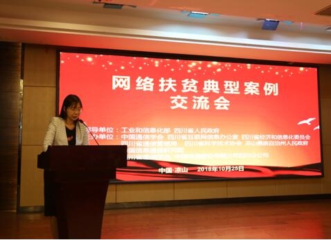 2018年10月25日,由工业和信息化部和四川省人民政府指导,中国通信学会联合四川省经济和信息化委员会、四川省通信管理局等单位共同主办的2018“网络扶贫典型案例交流会”在凉山州西昌市举行。本次交流会邀请工信部领导、四川省通信管理局领导、四川省信息化工作办公室领导、中国信息通信院领导以及在网络扶贫领域做出重要贡献的单位、企业和专家参加会议,现场发布网络扶贫优秀论文和网络扶贫最佳实践案例评选结果,围绕网络扶贫典型案例展开分享交流。