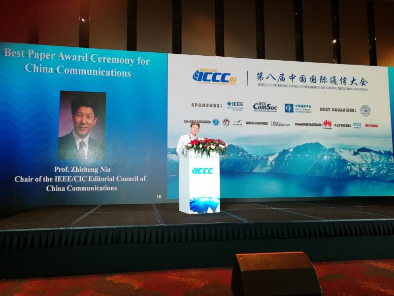 2019年8月12日上午,由中国通信学会和ieee联合主办的第八届中国国际通信大会在长春隆重开幕。开幕式上,举行了2019年度《中国通信》最佳论文奖颁典礼。《中国通信》期刊理事会主席、清华大学牛志升教授主持了颁奖典礼,长春理工大学姜会林院士、苏忠民校长和长春工业大学张明曜副校长为获奖者颁奖。
