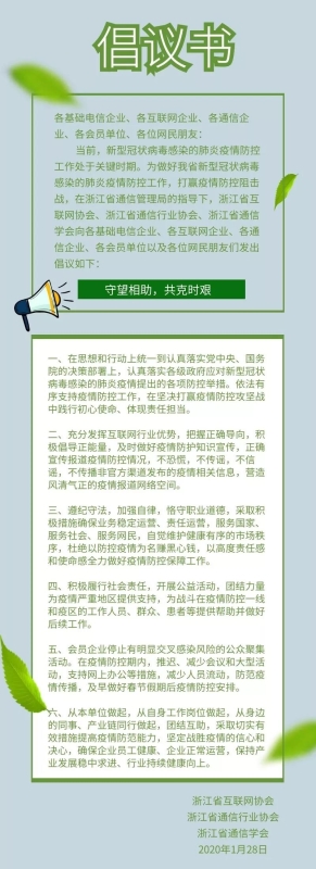 浙江省信息通信协会学会倡议书——守望相助,共克时艰-金年会体育