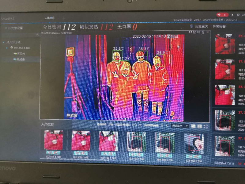 据了解,“5g红外热成像测温”具有“无接触式检测、高精度体温筛查、异常体温预警”的特性,日覆盖监测人流量可达500万人次,为单位复产复工后,在重点场所及人员聚集地开展防疫排查、体温实时监测、控制疾病传播,打造了一道坚实的防线。