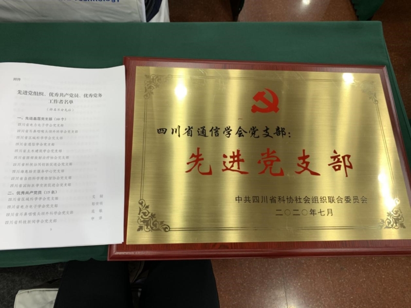 2020年7月6日,四川省科学技术协会召开庆祝中国共产党成立99周年大会,四川省通信学会党支部获得“先进党支部”荣誉称号。