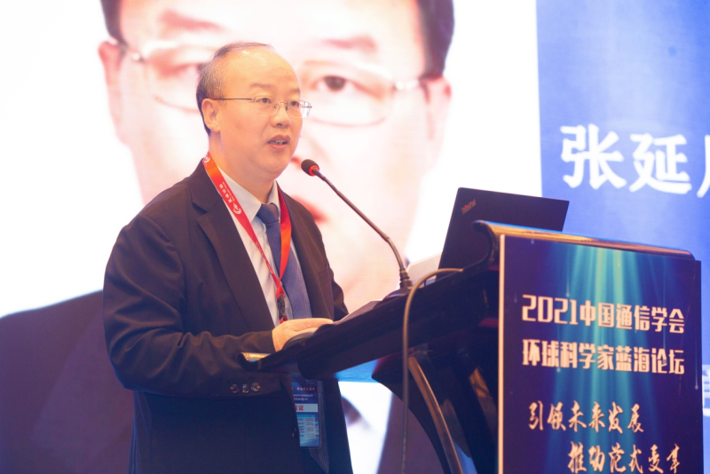 张延川秘书长在致辞中首先作为主办方欢迎与会的领导和来宾。他提到,中国通信学会作为中国信息通信领域学术交流的主渠道、创新驱动的促进平台、科学普及的主力军、国际科学技术交流的主要代表,认真落实党中央国务院关于建设制造强国、网络强国、数字中国、智慧社会的战略部署,积极倡导推进信息通信领域开展有深度、高层次的学术和产业交流。本次蓝海论坛以“引领未来发展,推动范式变革”为主题,以“拓展 5g 应用、探索 6g 研究”为核心话题,目的就是面向国家重大需求和产业发展需要,以科技创新为引领,促进产、学、研、用结合,推广先进技术,促进科技成果转化,推动产业发展。