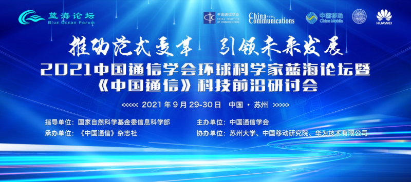 2021年9月29-30日,2021中国通信学会环球科学家蓝海论坛暨《中国通信》科技前沿研讨会在苏州举行。本次会议由国家自然科学基金委信息科学部指导,中国通信学会主办,《中国通信》杂志社承办,苏州大学、中国移动研究院、华为技术有限公司协办。