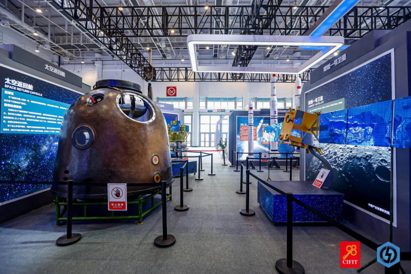 航空航天展区是今年展会的一大亮点,展区以航空科普为目的,展示国内航空业发展历程、成果,展品囊括卫星模型、登月车模型、太空舱、展示卫星遥感模、舱内宇航服等,彰显了我国航空领域科技强国的国家战略,以及工业互联网在航空领域的重要应用。