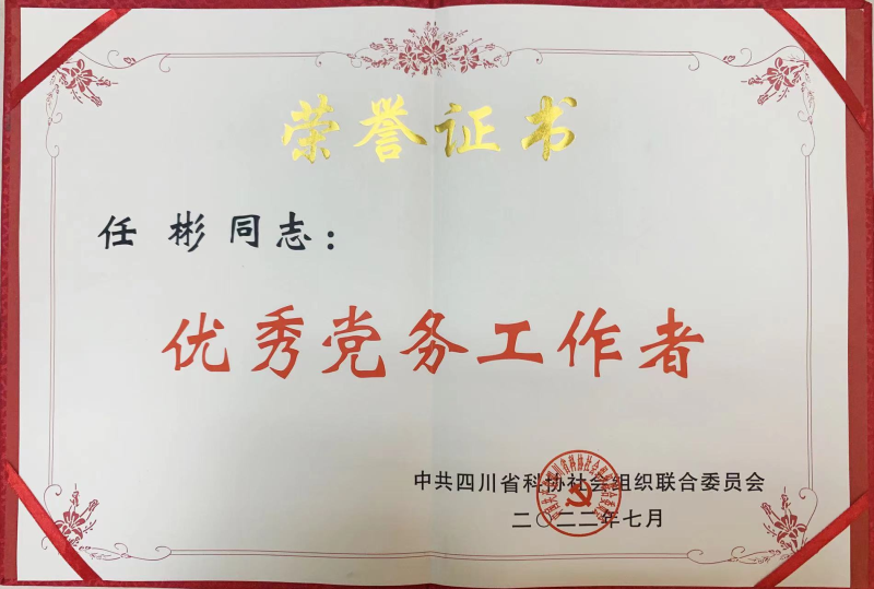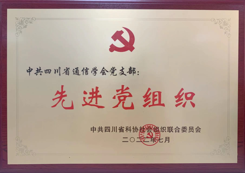2022年7月1日,四川省通信学会党支部被中共四川省科协社会组织联合委员会授予“先进党组织”荣誉称号,学会党支部书记任彬同志被授予“优秀党务工作者”荣誉称号。
