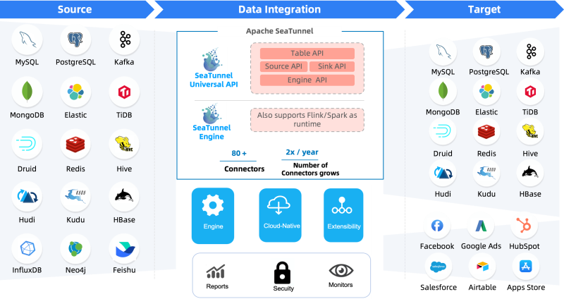 seatunnel使命就是连通全球的各种数据源,让简单易用的海量数据同步的能力传播到全世界。