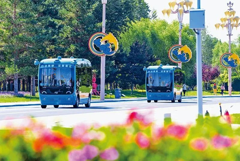 加强数字基础设施建设应用,是促进数字经济和实体经济深度融合的基石。图为2023年7月6日,自动驾驶观光巴士在内蒙古鄂尔多斯市康巴什区街头行驶。人民图片 王正/摄