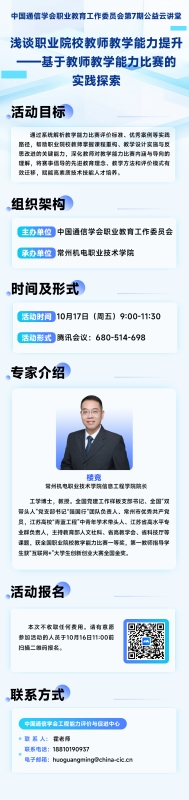 10月17日活动预告|中国通信学会职业教育工作委员会第7期公益云讲堂“浅谈职业院校教师教学能力提升——基于教师教学能力比赛的实践探索”-金年会体育