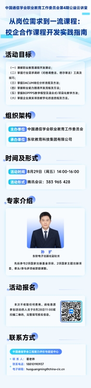 8月29日活动预告|中国通信学会职业教育工作委员会关于举办第4期公益云讲堂“从岗位需求到一流课程校企合作课程开发实践指南”-金年会体育